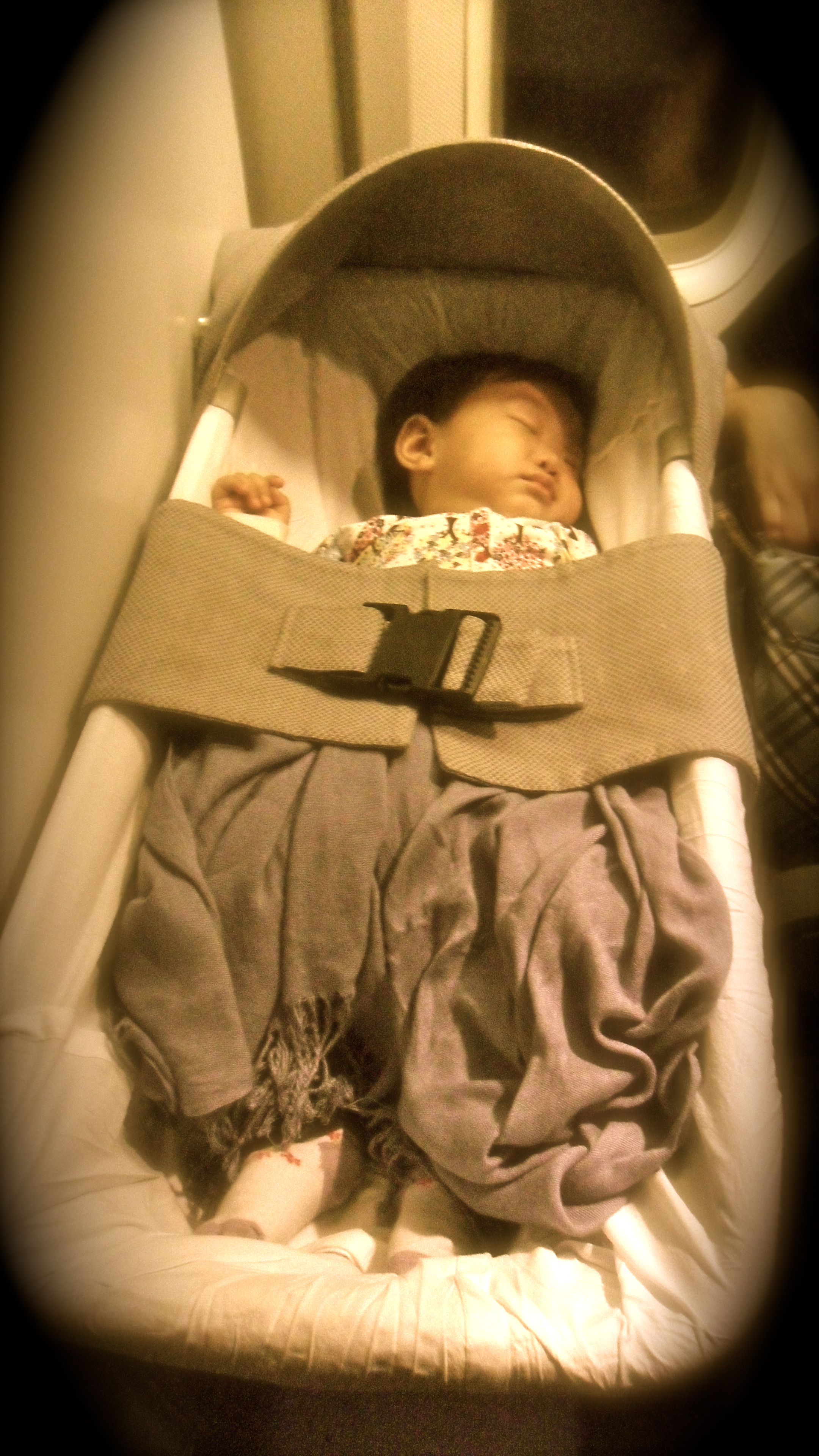 Flying on Lufthansa’s B747-400 with 14-month old baby Athena for the first time is quite an experience. For starters, taking off involves using the following cool contraption.
