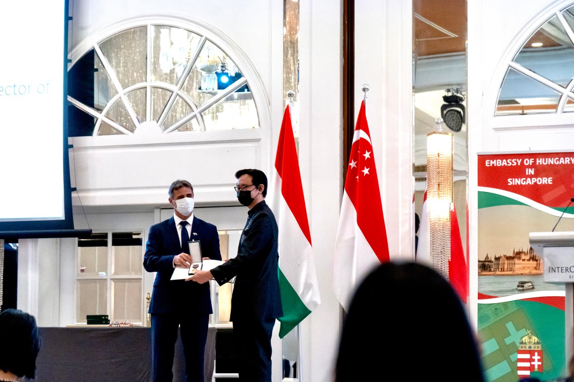 6 December 2021 DSC03832 Conferring of Gold Cross by Ambassador István Szerdahelyi. Photo Credits: Tay Yi Xuan Mich